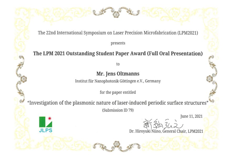 Für ihr Poster zum Thema „Viscoelastic deformation of glass substrates by laser patterned stressed films“…